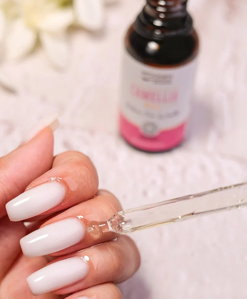 Дълбока хидратация: Богато на олеинова киселина, маслото от камелия прониква в дълбочина в нокътната плочка, осигурявайки интензивна хидратация. Това предотвратява сухотата и чупливостта, като прави ноктите по-еластични и устойчиви на напукване.